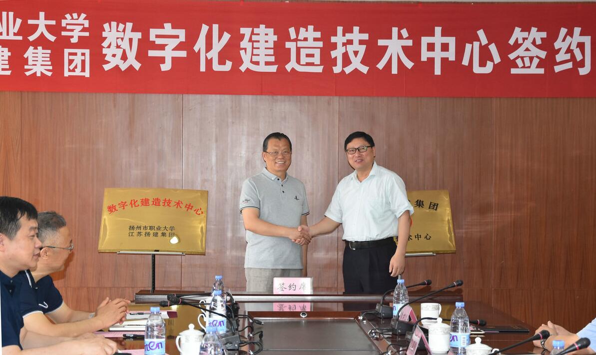 揚建網訊(人力資源部 張 凱)5月18日上午,集團與揚州職業(yè)大學共建數字化建造技術中心簽約揭牌儀式在職大崇德樓會議室舉行,標志著雙方繼2009年共建土木工程實訓中心后,推進產教融合、深化校企合作又一重要項目正式啟動。揭牌后雙方就推進項目運營進行了座談交流。揚州職大黨委書記周勝、校長吳春篤、副校長陳亞鴻、紀委書記劉建偉,集團董事長曹德榮、黨委書記康往東、總經理鄒厚存等出席相關活動。