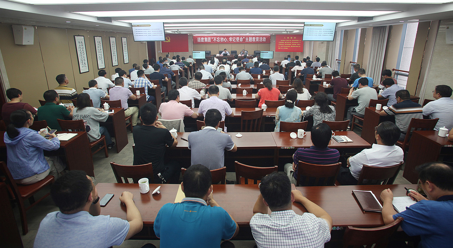 揚建網(wǎng)訊 為紀念中國共產(chǎn)黨成立97周年,結(jié)合集團2018年黨建工作總體要求,不斷增加黨組織的創(chuàng)造力、凝聚力和戰(zhàn)斗力,進一步推動集團各項改革發(fā)展工作 ,7月8日下午,集團黨委在揚州運河城市廣場B座14樓會議室舉辦了“不忘初心、牢記使命”主題教育活動?;顒佑牲h委副書記張振新同志主持,集團在揚黨委委員、高管、總部及基層黨員干部共115人參加。