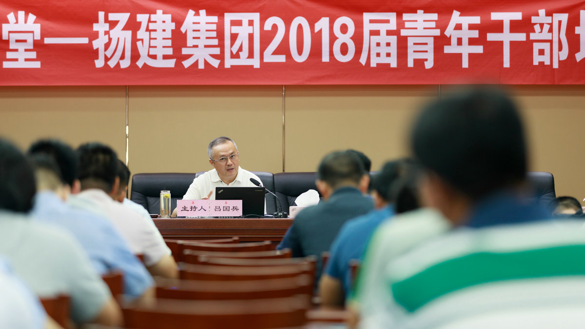 揚建網(wǎng)訊 為進(jìn)一步培養(yǎng)青年干部對企業(yè)文化認(rèn)同感、歸屬感,強化個人和團(tuán)體管理協(xié)作能力,豐富實踐技能、專業(yè)知識等文化軟實力。7月14日上午,集團(tuán) “揚建講堂——揚建集團(tuán)2018屆青年干部培訓(xùn)班” 在運河城市廣場B座14樓會議室開班。集團(tuán)董事呂國兵主持開班儀式,集團(tuán)董事長曹德榮、黨委書記康往東、總經(jīng)理鄒厚存,黨委副書記張振新、陳滸出席并講話,共52名青年干部參加了學(xué)習(xí)。