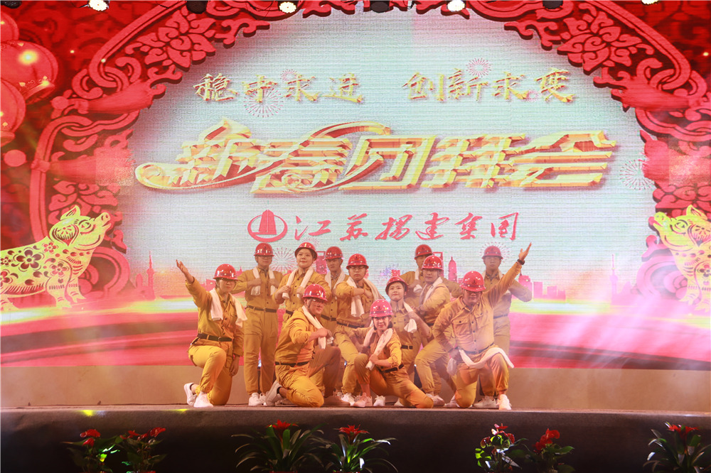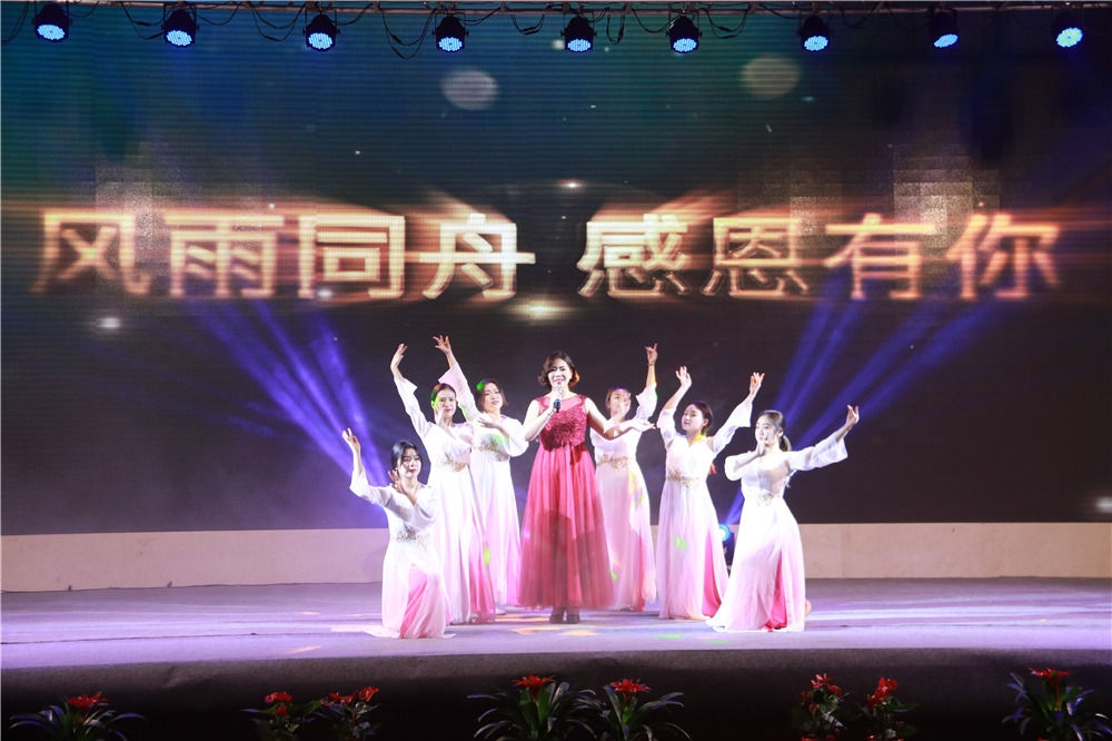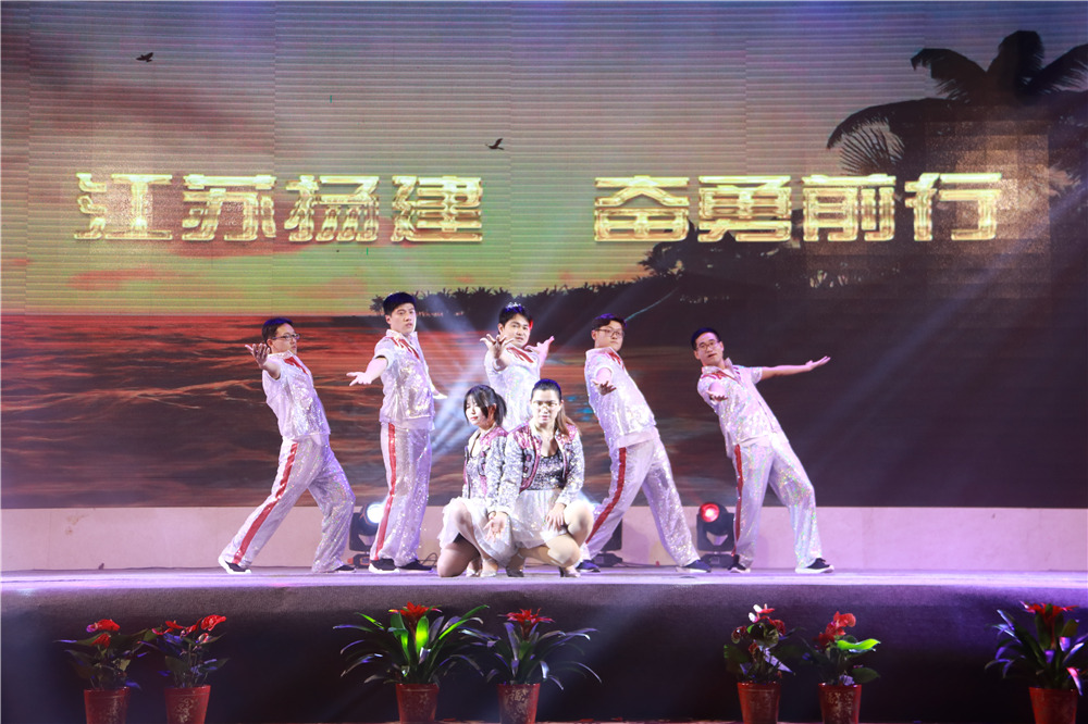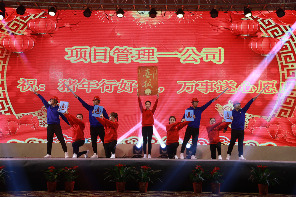 隨后,華中華鼎公司聯(lián)袂表演歌伴舞《我愛你中國&相親相愛一家人》,四公司員工表演的音樂快板《揚(yáng)建花開大上?!罚v述了四公司2108年發(fā)展喜事多,業(yè)績上臺(tái)階,全速開發(fā)江浙滬的發(fā)展業(yè)績;樁基公司以評(píng)話+講述+歌舞的形式表演了《我們是快樂的一家人》;一公司的搖滾說唱《一公司,爭第一》節(jié)目,表達(dá)了舍我其誰、永爭第一的豪情;三公司年輕員工表演了音詩畫劇《建筑“舞”者》;二公司的90后員工表演了,配樂朗誦《厲害了,揚(yáng)建90后》,表達(dá)了立志與前輩們一起譜寫揚(yáng)建發(fā)展新篇章的雄心;海南島的阿哥阿妹表演了舞蹈《筑夢城市》;機(jī)電公司的說唱歌舞《追夢揚(yáng)建》,描繪了2019將是承載新夢想、發(fā)力新業(yè)態(tài)的嶄新一年;華發(fā)公司的音樂短劇《新時(shí)代的弄潮者》,展示了揚(yáng)建人揚(yáng)建人薪火相傳66載,緊跟時(shí)代,勇立潮頭的精神面貌;華盛周材公司最后表演了寓意深刻的歌舞+武術(shù)《風(fēng)雨同舟,感恩有你》。
