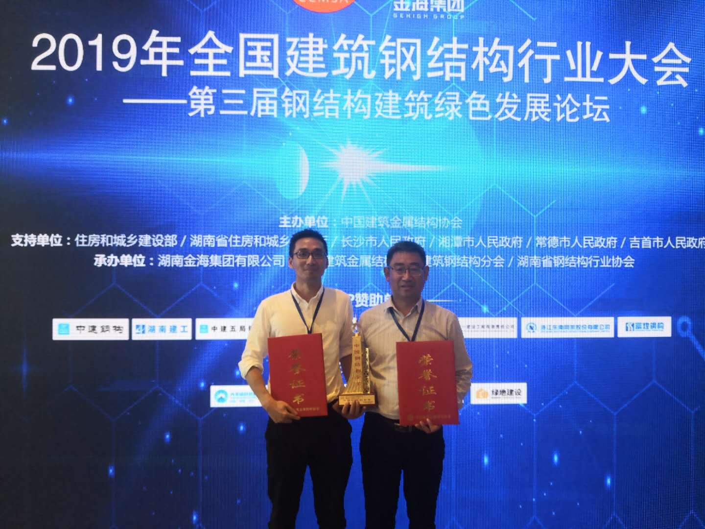 揚(yáng)建網(wǎng)訊 5月29日,2019年全國建筑鋼結(jié)構(gòu)行業(yè)大會在長沙隆重舉行,會議對2017~2018年度鋼結(jié)構(gòu)行業(yè)的先進(jìn)進(jìn)行表彰,我集團(tuán)鋼結(jié)構(gòu)分公司所承建的揚(yáng)州市游泳健身中心鋼結(jié)構(gòu)工程、南部體育公園鋼結(jié)構(gòu)工程分別獲得了第十三屆第一批、第二批中國鋼結(jié)構(gòu)金獎(jiǎng)。