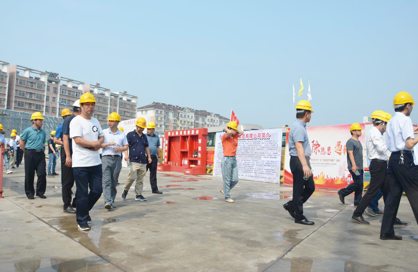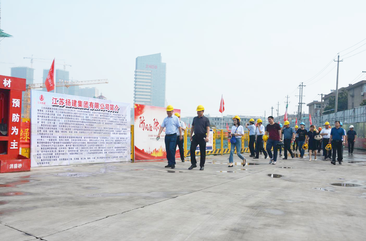 揚建網(wǎng)訊 6月28日上午,揚中市林成春副市長帶領(lǐng)市住建局局長、生態(tài)環(huán)境局局長等相關(guān)部門負責人以及揚中市所有在建項目負責人在我集團和上海七建共同承建的揚中老城區(qū)改造項目——新城九里香畔項目召開揚中市建設(shè)工程揚塵治理工作會。