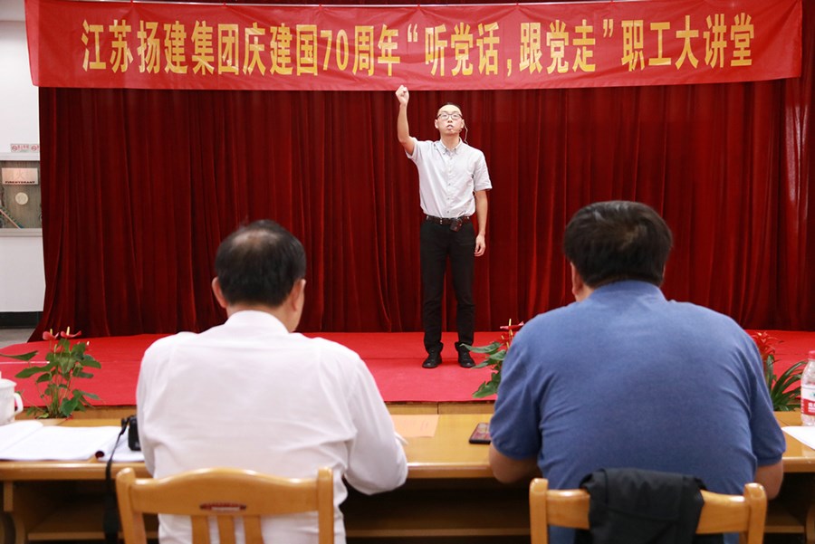 揚建網(wǎng)訊 9月29日下午,集團(tuán)黨委、工會等部門在鹽阜辦公區(qū)七樓會議室舉辦了“聽黨話,跟黨走”慶國慶演講比賽。集團(tuán)領(lǐng)導(dǎo)鄒厚存、呂國兵、張振新、陳滸、丁傳武、周軍等蒞臨指導(dǎo),并特邀了市建設(shè)產(chǎn)業(yè)工會主任范華、市建工控股黨委副書記錢啟明共同擔(dān)任評委。集團(tuán)總部及基層單位共選派了22名選手參加了比賽。