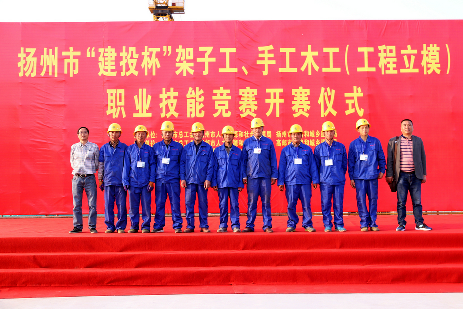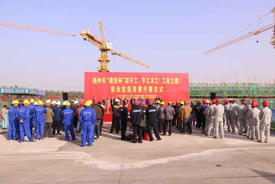 揚(yáng)建網(wǎng)訊 10月31日,由揚(yáng)州市總工會(huì)、人社局、住建局聯(lián)合主辦,高郵市總工會(huì)、人社局、住建局承辦,高郵市建設(shè)投資發(fā)展集團(tuán)有限公司協(xié)辦的揚(yáng)州市“建投杯”架子工、手工木工(工程立模)職業(yè)技能競(jìng)賽在高郵市潤(rùn)豐苑項(xiàng)目部工地隆重舉辦。
