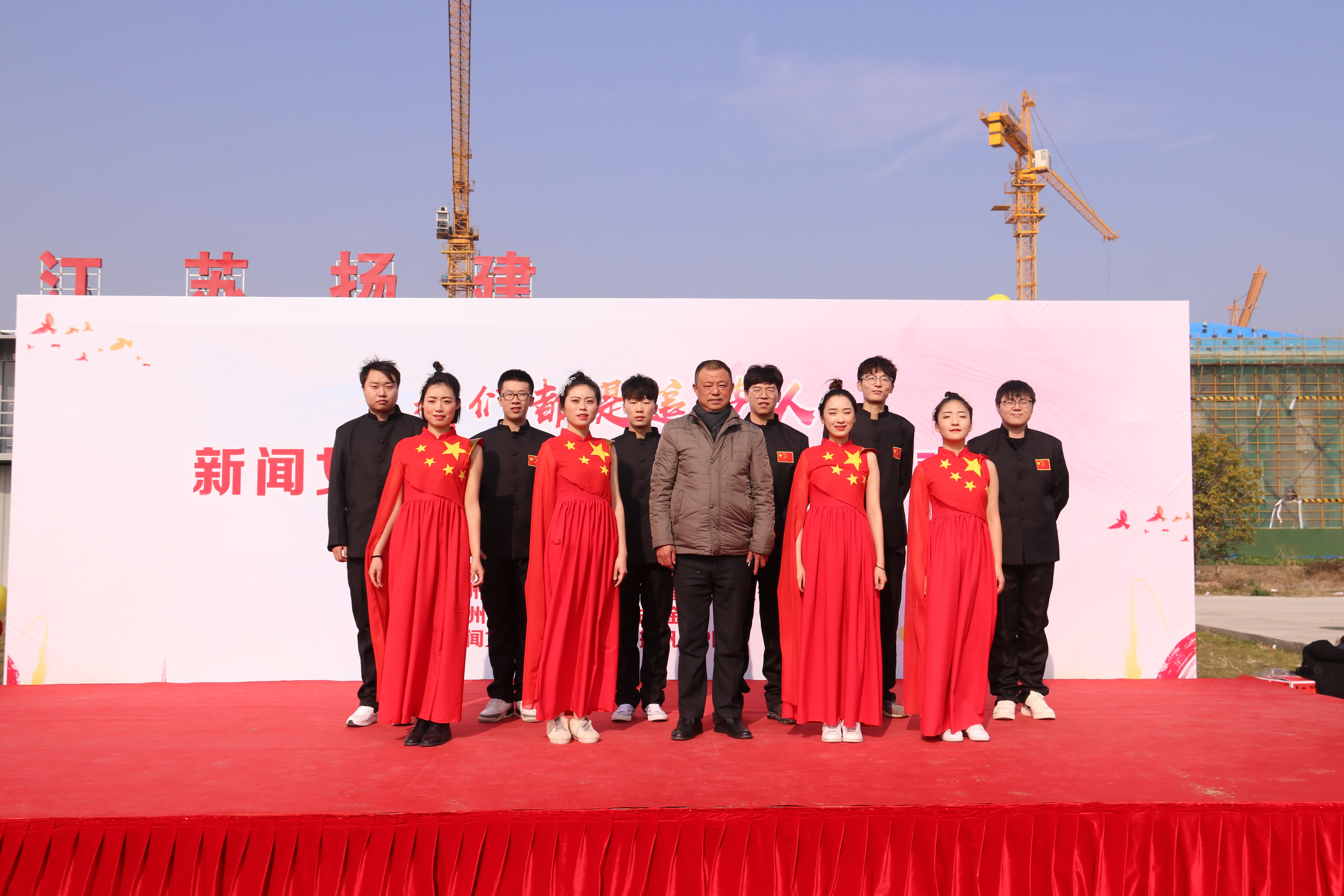 揚建網(wǎng)訊 12月28日中午,由揚州市文明辦、揚州市民政局、揚州市衛(wèi)生健康委員會、揚州廣電總臺和我揚建集團(tuán)聯(lián)合主辦的“我們都是追夢人——新聞女生 產(chǎn)業(yè)工人新年聯(lián)歡會"在我集團(tuán)廣陵教育文化產(chǎn)業(yè)基地項目初中部(即華師大初中部項目)工地順利舉行。市相關(guān)領(lǐng)導(dǎo)和我集團(tuán)黨委副書記、工會主席張振新等出席了本次活動。