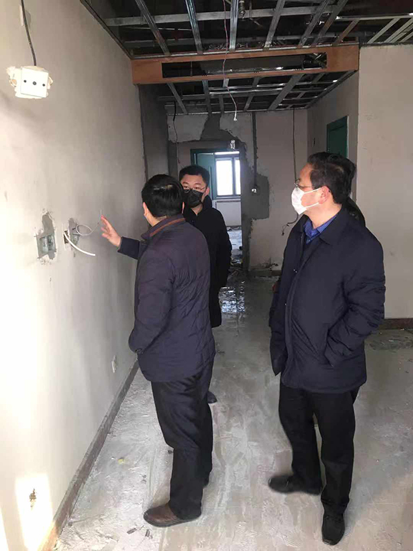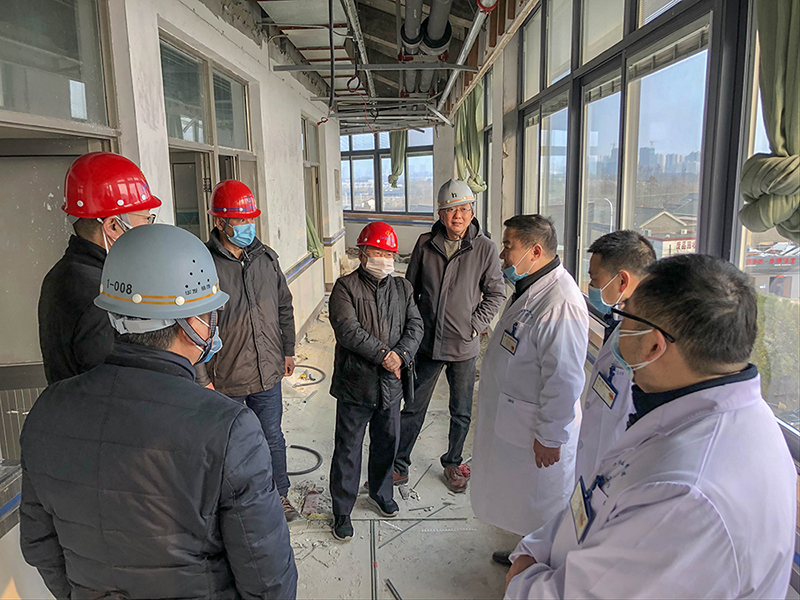 1月27日(正月初三)下午,揚(yáng)州市市長張寶娟來到市三院,現(xiàn)場調(diào)研新型冠狀病毒感染的肺炎疫情防控工作;市衛(wèi)健委主任趙國祥、建工控股董事長王宏、揚(yáng)建集團(tuán)總經(jīng)理鄒厚存等相關(guān)領(lǐng)導(dǎo)陪同,并匯報了關(guān)于新建100間箱式板房工程施工方案和進(jìn)度計劃。由于時間急如星火,為確保及時投入使用,經(jīng)揚(yáng)州市委最終決定,取消原100間板房的建設(shè)計劃,改為將原醫(yī)院4#樓改造為治療醫(yī)生和護(hù)士的隔離生活區(qū)。該病房改造項目為5層,總面積約6000㎡,1~3層要求正月十五完成,4層要求正月二十結(jié)束。具體由揚(yáng)建集團(tuán)華發(fā)公司負(fù)責(zé)設(shè)計并牽頭施工。華發(fā)公司設(shè)計經(jīng)理薛愛遐參與制定了設(shè)計方案。