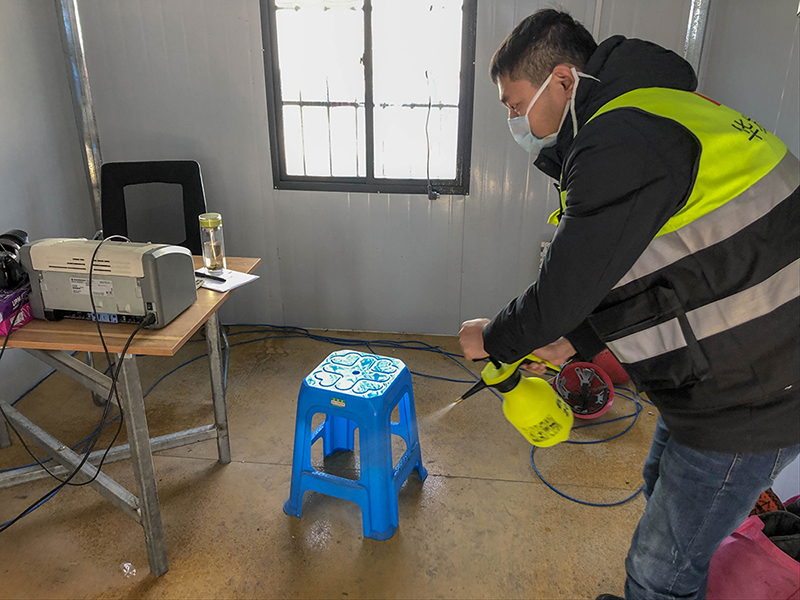 非常時期,人員和資源都很難安排。我集團(tuán)相關(guān)管理人員都本著高度的社會責(zé)任感,在接到命令后第一時間到崗;但集裝箱卡車、吊機(jī)、挖機(jī)、安裝工、漆工以及打掃搬運(yùn)的工人等,以及施工人員所需的口罩、消毒液等防護(hù)用品,都需要緊急協(xié)調(diào)。在陳寶中同志的直接關(guān)注和支持下,該項目各項準(zhǔn)備工作迅速就緒。