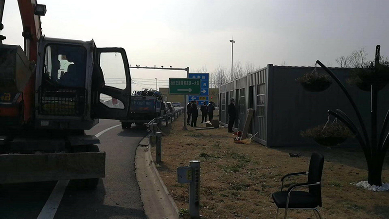 又訊:正月初五下晚,揚(yáng)州生態(tài)新城領(lǐng)導(dǎo)找到我集團(tuán)一公司,要求我方安排四個集裝箱到滬陜高速G40杭集出口,放在醫(yī)務(wù)人員測溫檢查房旁邊,用于隔離異常人員。箱子要放在綠化帶斜坡上,需要拆除隔離帶,做一條通道,把挖機(jī)開進(jìn)去,平整好之后放上去;并把箱子用油漆外圍出新,里面打掃好,做相應(yīng)改造,接上水電、洗手池,放上桌椅、油汀、水壺水瓶。