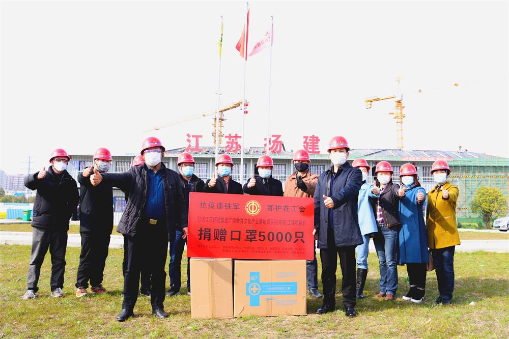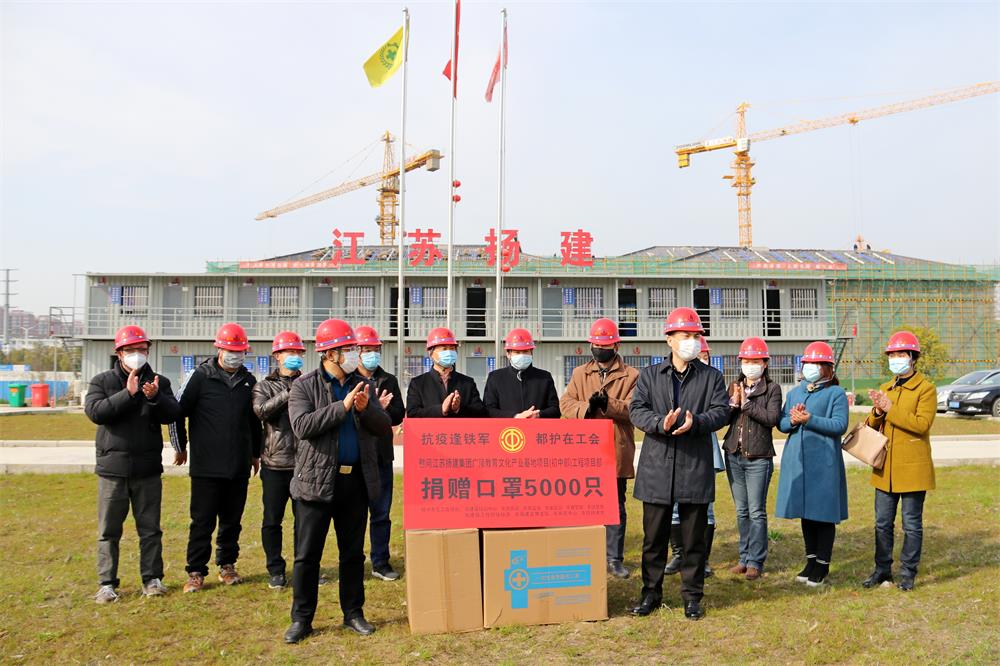 我集團副總經理陳寶中代表項目部接受了捐贈,并對市總工會及各建管單位捐贈口罩表示感謝。他表示,目前集團各大項目在做好防疫措施的基礎上已全面復工,揚建人一定會確保生產的平穩(wěn)、安全、有序,同時不負市總工會和社會各界的援助和關注,在維護好職工安全健康權益的基礎上,把疫情期間延誤的工期搶回來。