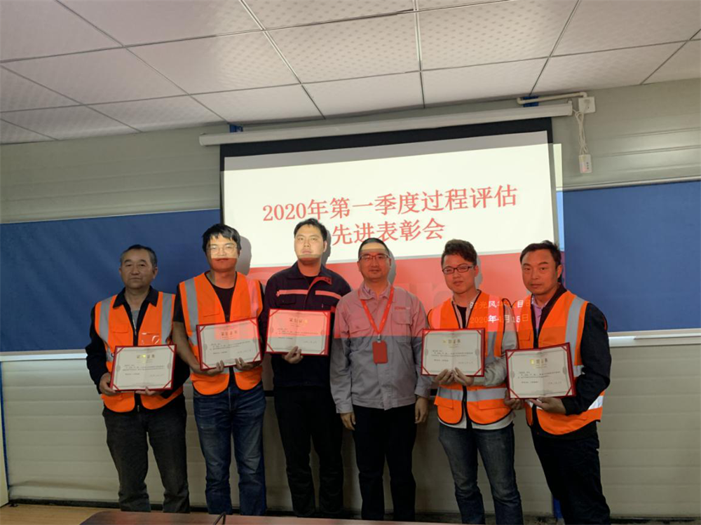 揚(yáng)建網(wǎng)訊 為表彰滁州時(shí)光風(fēng)華園項(xiàng)目在2020年弘陽(yáng)第三方檢測(cè)中取得的優(yōu)異成績(jī),4月15日下午,弘陽(yáng)業(yè)主方王柏帥經(jīng)理在項(xiàng)目部會(huì)議室召開(kāi)表彰大會(huì),專門(mén)表彰了四公司項(xiàng)目部表現(xiàn)突出的員工劉忠華同志、周學(xué)平同志及趙文斐同志和李竹全團(tuán)隊(duì)。