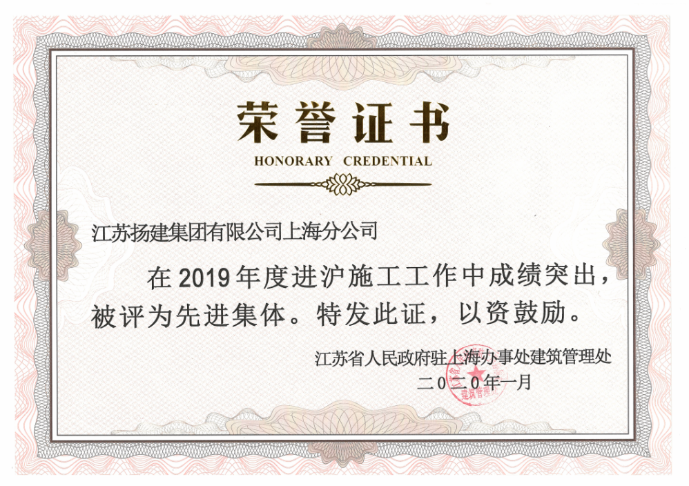 揚建網(wǎng)訊 日前,江蘇省政府駐滬辦交流總結(jié)會在上海召開。會議對2019年度江蘇省進(jìn)滬施工先進(jìn)企業(yè)和個人進(jìn)行了通報表揚。其中,四公司獲評2019年度進(jìn)滬施工優(yōu)秀先進(jìn)集體;張斌同志獲評2019年度進(jìn)滬施工先進(jìn)個人;李金邦同志獲評2019年度進(jìn)滬施工優(yōu)秀建造師。