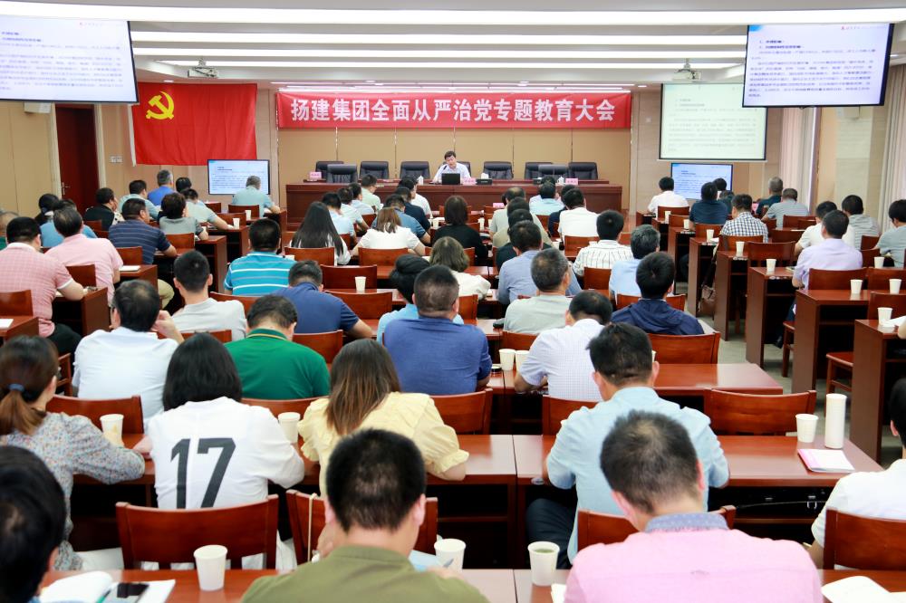 揚(yáng)建網(wǎng)訊 7月1日,集團(tuán)黨委在文昌辦公區(qū)14樓會(huì)議室召開全面從嚴(yán)治黨專題教育大會(huì)。會(huì)議由集團(tuán)黨委副書記張振新同志主持,集團(tuán)在揚(yáng)黨委委員、在揚(yáng)各單位黨政負(fù)責(zé)人、總部全體黨員、在揚(yáng)單位黨員代表百余人參加了會(huì)議。