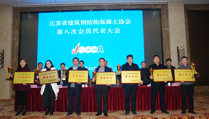 揚(yáng)建網(wǎng)訊(鋼結(jié)構(gòu) 王晨)12月25日,江蘇省建筑鋼結(jié)構(gòu)混凝土協(xié)會(huì)第八次會(huì)員代表大會(huì)在南京召開。本次大會(huì)對(duì)獲獎(jiǎng)企業(yè)及個(gè)人進(jìn)行了表彰,鋼結(jié)構(gòu)分公司代表揚(yáng)建集團(tuán)獲得“2014-2015年度江蘇省鋼結(jié)構(gòu)行業(yè)最佳企業(yè)”,連續(xù)四年蟬聯(lián)此項(xiàng)殊榮;王盛祥被評(píng)為“2014-2015年度江蘇省鋼結(jié)構(gòu)行業(yè)優(yōu)秀企業(yè)家”。