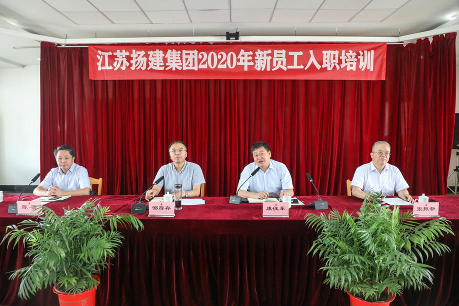 揚建網(wǎng)訊 7月20日上午九點,集團在鹽阜辦公區(qū)七樓會議室舉辦2020屆新員工與公司領(lǐng)導(dǎo)見面會。會議由集團黨委副書記張振新同志主持,集團公司董事長、集團黨委書記康往東、集團公司總經(jīng)理鄒厚存、集團黨委副書記陳滸出席了會議。