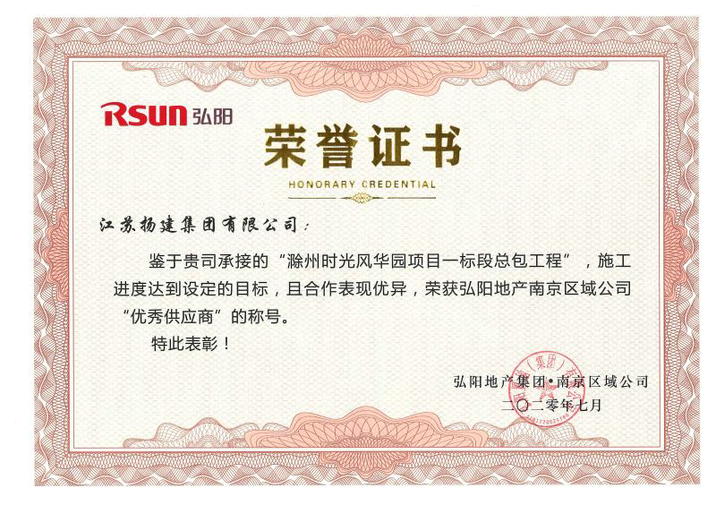 集團(tuán)獲評(píng)弘陽地產(chǎn)南京區(qū)域優(yōu)秀供應(yīng)商