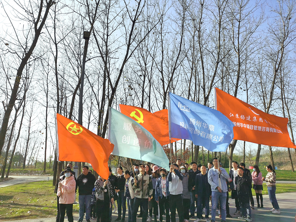 揚(yáng)建網(wǎng)訊 11月14日,為增進(jìn)員工間友誼,豐富員工業(yè)余生活,增進(jìn)同行單位相互間交流。華中、華鼎公司及揚(yáng)州造價(jià)管理站在揚(yáng)州觀月湖生態(tài)農(nóng)業(yè)科技園共同開展了戶外團(tuán)建并進(jìn)行了主題黨課日活動(dòng)。