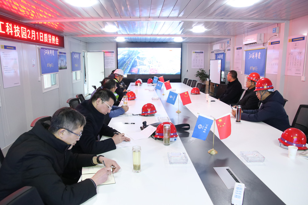 在建工科技園項目檢查中,相關部室負責人就春節(jié)前后安全生產(chǎn)、工期節(jié)點保障、食堂食品衛(wèi)生、節(jié)日保衛(wèi)值班、節(jié)后復工準備、防疫物質(zhì)儲備等方面的工作要求,向項目部主要負責同志一一作了交底;丁國偉等項目負責同志就當前生產(chǎn)情況以及節(jié)日前后相關工作安排及準備一一作了匯報。