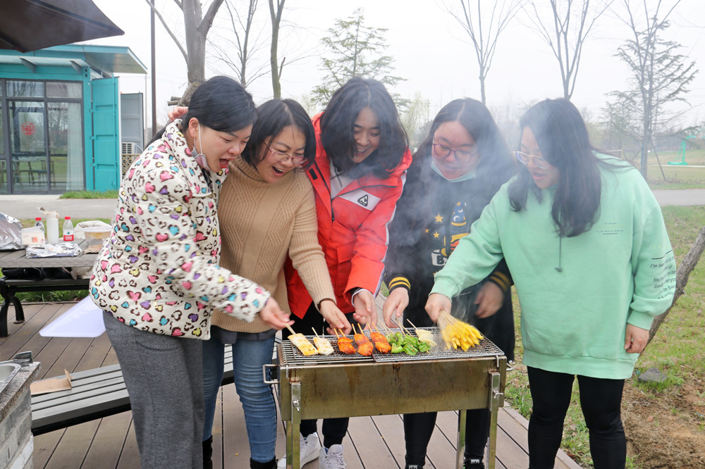 3月5日上午10點(diǎn)20分,大家滿懷期待從鹽阜辦公區(qū)集合向揚(yáng)建觀月湖生態(tài)園出發(fā)。集團(tuán)工會(huì)首先為公司女同胞們策劃了一場(chǎng)戶外踏青燒烤活動(dòng),為在工作崗位上辛勤工作的女同胞們送來(lái)節(jié)日的問(wèn)候和祝福。女員工們不僅在工作上毫不含糊,居家動(dòng)手能力也不容小覷,現(xiàn)場(chǎng)搬燒烤物資、點(diǎn)火炭…,都來(lái)展示自己的拿手烤藝,大家如工作中一樣分工合作、緊密配合,忙得不亦樂(lè)乎,心情也是美麗的!在女同胞們的精心制作下,美味飄香四溢,色香俱全。大家置身于大自然的懷抱,呼吸著綠色氧吧的新鮮空氣,品嘗著美味佳肴,感受著揚(yáng)建大家庭對(duì)女同胞們的關(guān)懷,談笑風(fēng)生,其樂(lè)融融。