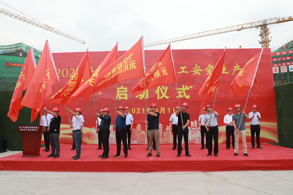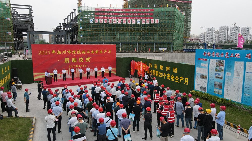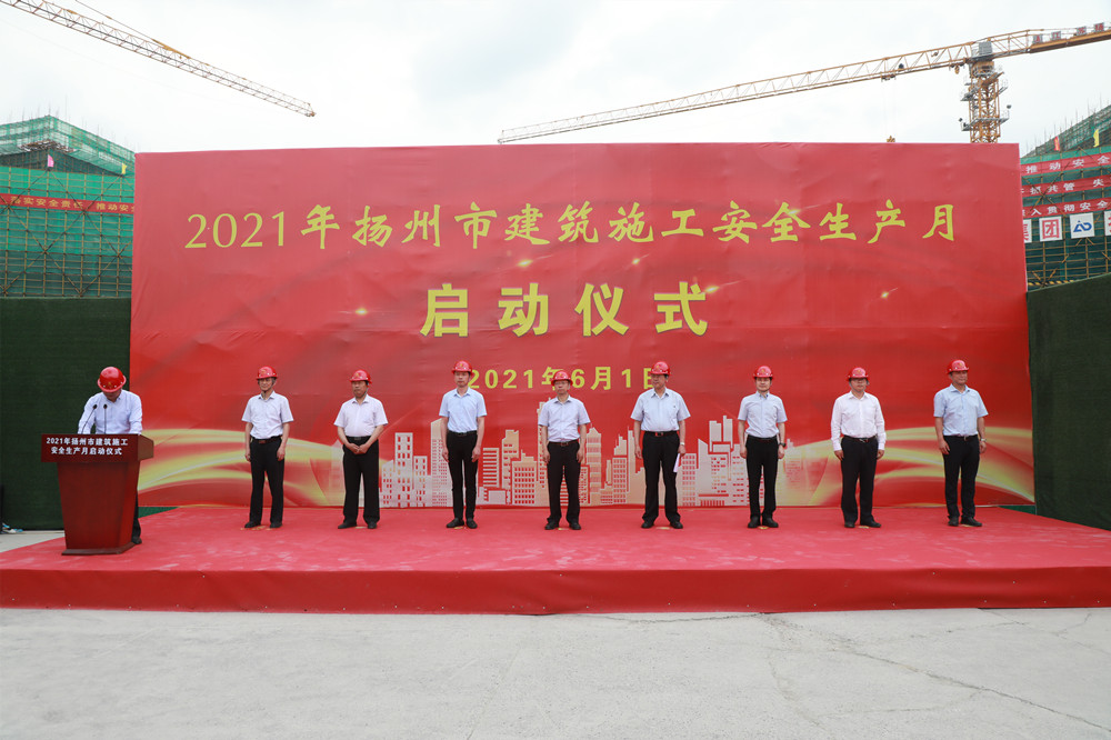 啟動(dòng)儀式上,陶伯龍局長解讀了2021年揚(yáng)州市建筑施工“安全生產(chǎn)月”活動(dòng)文件;頤和公司、揚(yáng)建集團(tuán)、揚(yáng)州建筑設(shè)計(jì)院分別代表建設(shè)單位、施工單位、監(jiān)理單位作了交流發(fā)言;我集團(tuán)安全監(jiān)督部朱曉軍部長代表揚(yáng)建頤和項(xiàng)目上臺(tái)受旗。