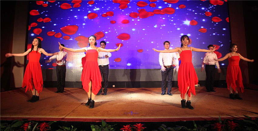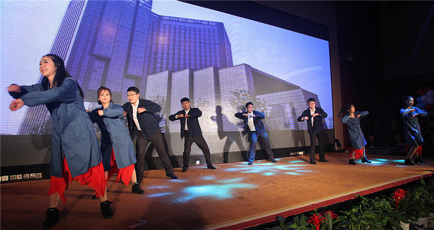 接下來,華中、華鼎兩單位員工聯合表演了現代舞蹈《青春舞曲》;二公司員工獻演了歌舞《揚建緣》;建祥公司職工小家屬賈宇晨等小朋友演奏了架子鼓《逆戰(zhàn)》。在兩輪互動節(jié)目《微信搖一搖》之后,四公司員工表演了爵士舞《Senorita》;三公司員工表演了五人情景劇《工地激情》;機電環(huán)保公司員工表演了《手勢舞》;華達房地產公司獻演了小品《星悅誠服》;華發(fā)公司員工表演了音樂舞蹈劇《傳承》;市政分公司員工表演了舞蹈《舞動青春》。