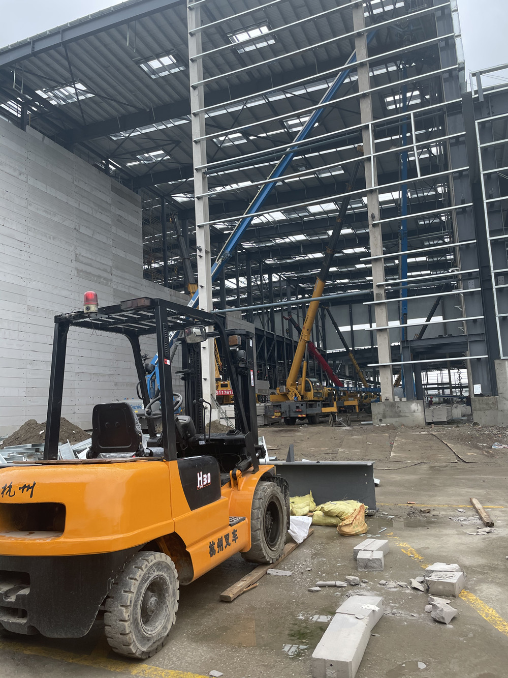 合理部署、周密統(tǒng)籌。時(shí)間倒轉(zhuǎn)回20天前。偌大且空曠的鋼結(jié)構(gòu)框架佇立在黃土之上,四面透風(fēng)顯得異常寂寥。墻板、地坪、屋面、水電安裝成為整個(gè)立體倉庫被壓縮生產(chǎn)進(jìn)度中最難搞定的事。面對嚴(yán)峻的挑戰(zhàn),項(xiàng)目部立即組織各專業(yè)公司、分包隊(duì)組召開生產(chǎn)進(jìn)度會。從生產(chǎn)進(jìn)度、安全、質(zhì)量等方面全盤統(tǒng)籌、全員投入、周密安排,將每道工序在保質(zhì)保量的情況下壓縮到最短時(shí)間,并無縫銜接下道工序。
