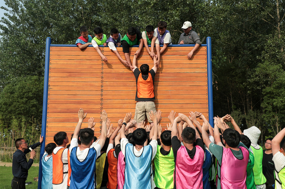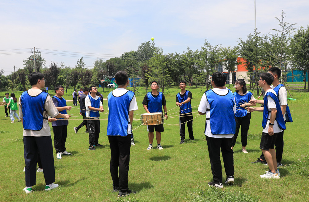 拓展訓(xùn)練中,全體新員工分成八個(gè)小團(tuán)隊(duì),協(xié)作完成“極速六十秒”“擊鼓顛球”“水到渠成”“激情節(jié)拍”“翻越畢業(yè)墻”等挑戰(zhàn)任務(wù),達(dá)到了“在歡樂中增進(jìn)友誼、在挑戰(zhàn)中認(rèn)識(shí)自我、在團(tuán)結(jié)中凝聚力量”的預(yù)期效果。