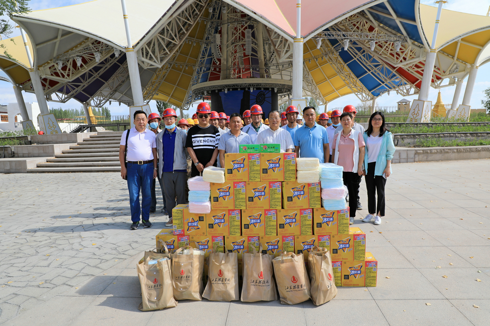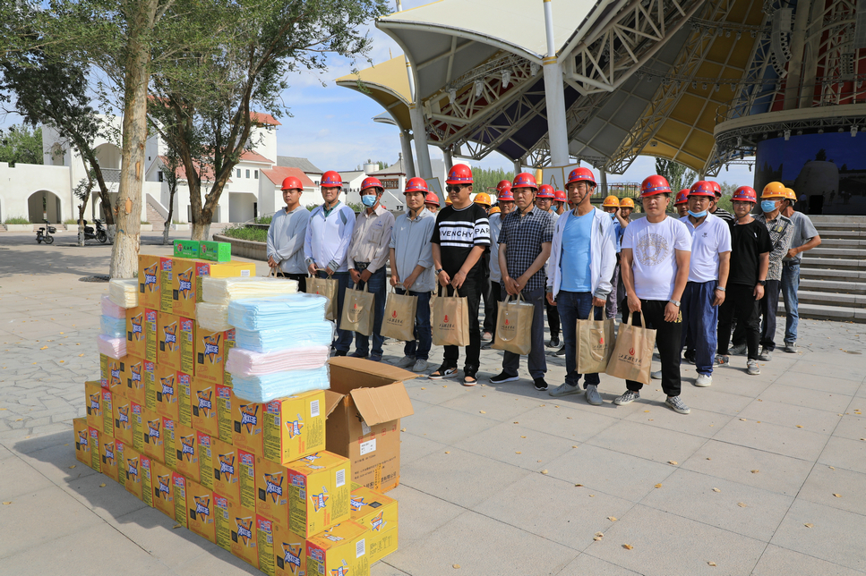 揚(yáng)建網(wǎng)訊 7月14日至20日,集團(tuán)理事會(huì)主席曹德榮、工會(huì)主席孔凡裕等一行五人先后來到北方公司天津招商公園1872項(xiàng)目、新疆分公司西部烏鎮(zhèn)項(xiàng)目慰問一線施工人員,為冒著酷暑?yuàn)^戰(zhàn)在一線的項(xiàng)目部管理人員、施工人員送去了飲料等防暑降溫用品。