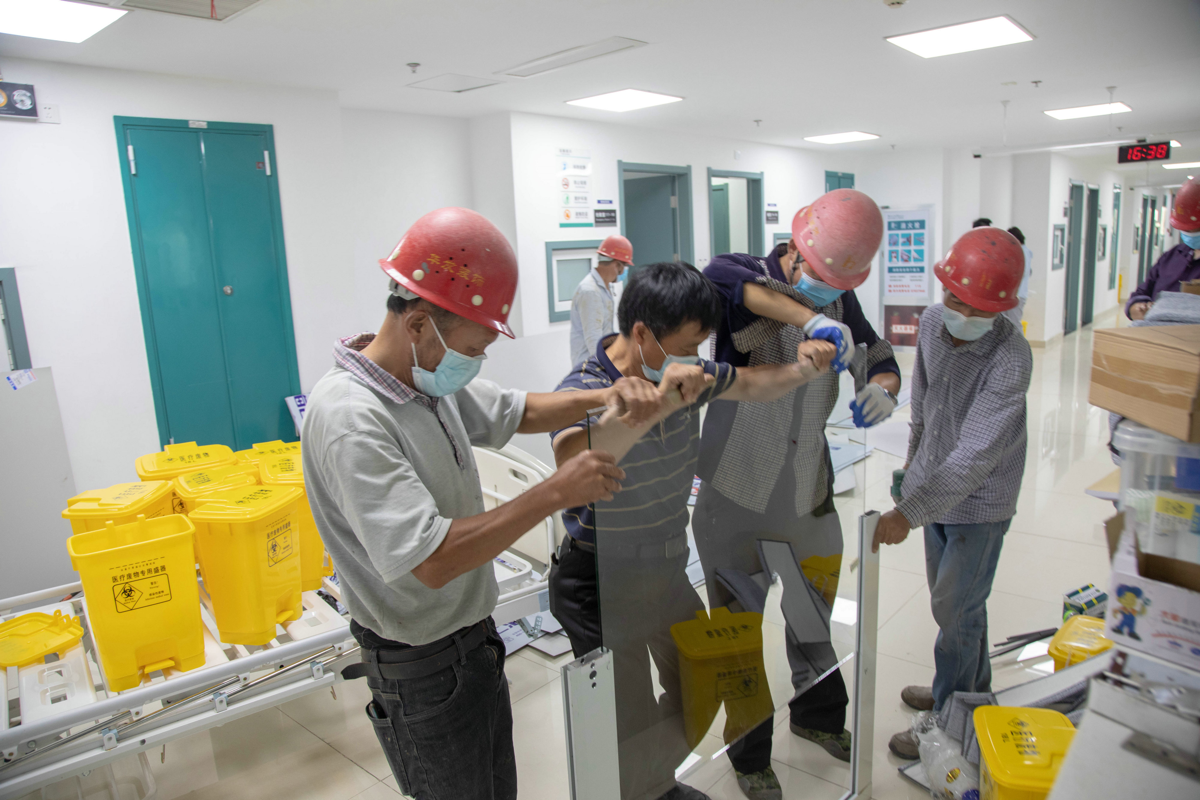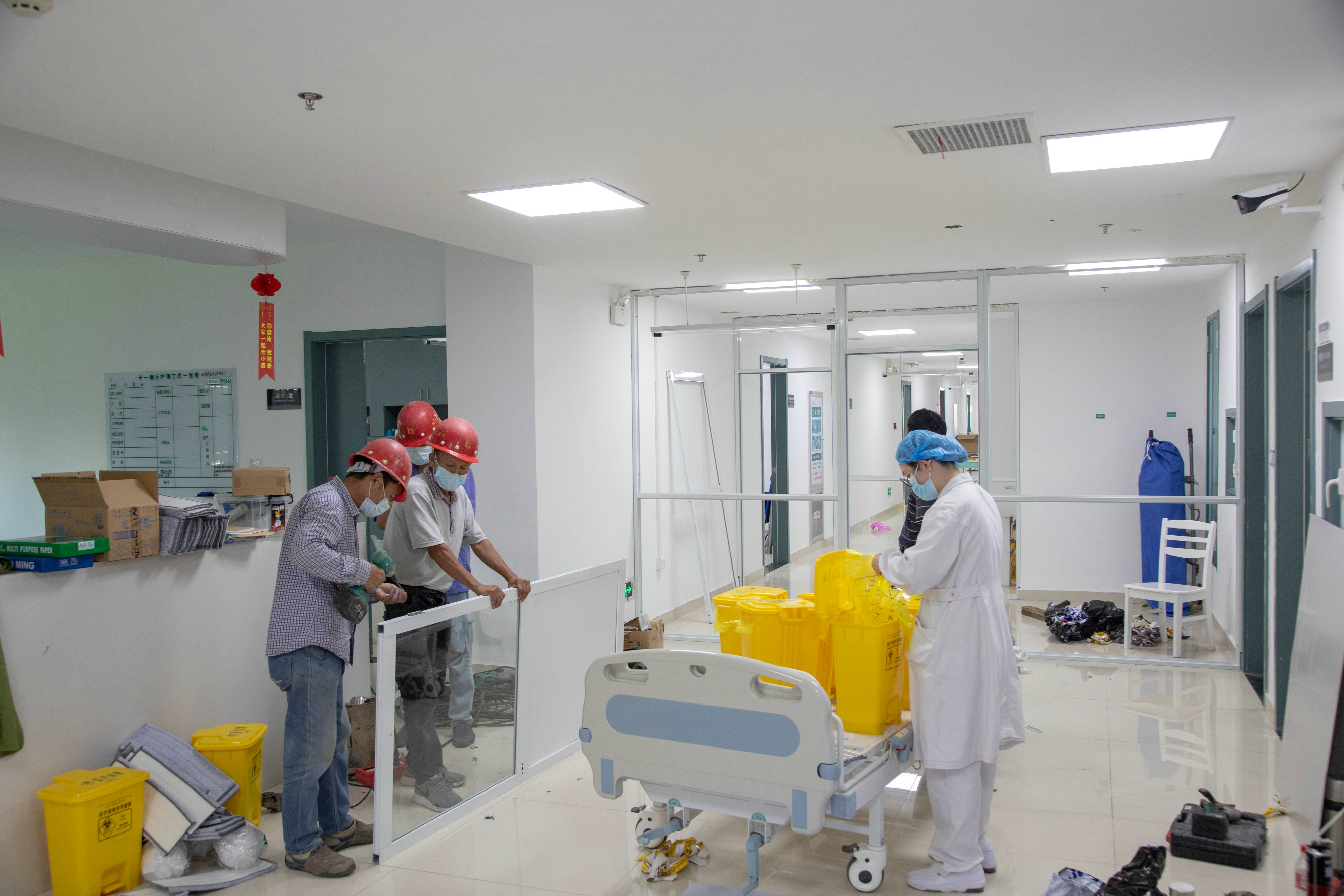 就在4日晚8點即將完工時,這時院方又臨時下達了新的工作任務——再加兩個隔斷和幾十米的護欄安裝,天亮前必須完成。王學金同志隨即通知華發(fā)基地連夜加急趕工生產,凌晨12點制作完成后立即拖回材料現(xiàn)場安裝。經過42個小時的通宵奮戰(zhàn),終于在5日早晨完成了全部任務。完成交付任務時,駐扎在市三院的國家衛(wèi)計委專家組對施工質量給予了肯定。任務完成后,施工人員們并沒有立即回家休息,而是原地待命,防止還有其他突發(fā)應急任務。