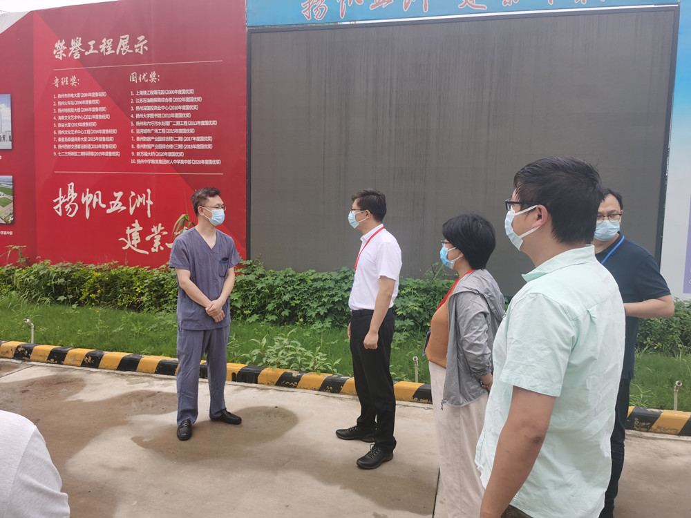 揚建網(wǎng)訊 8月15日上午10:00,揚州市廣陵區(qū)郎俊區(qū)長和李建芳副區(qū)長來到揚州頤和醫(yī)療健康中心項目檢查了項目防疫工作。