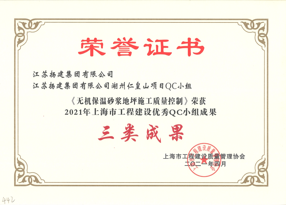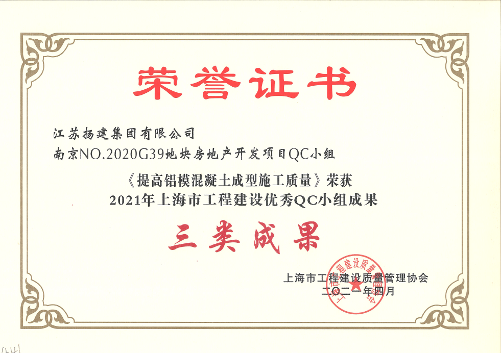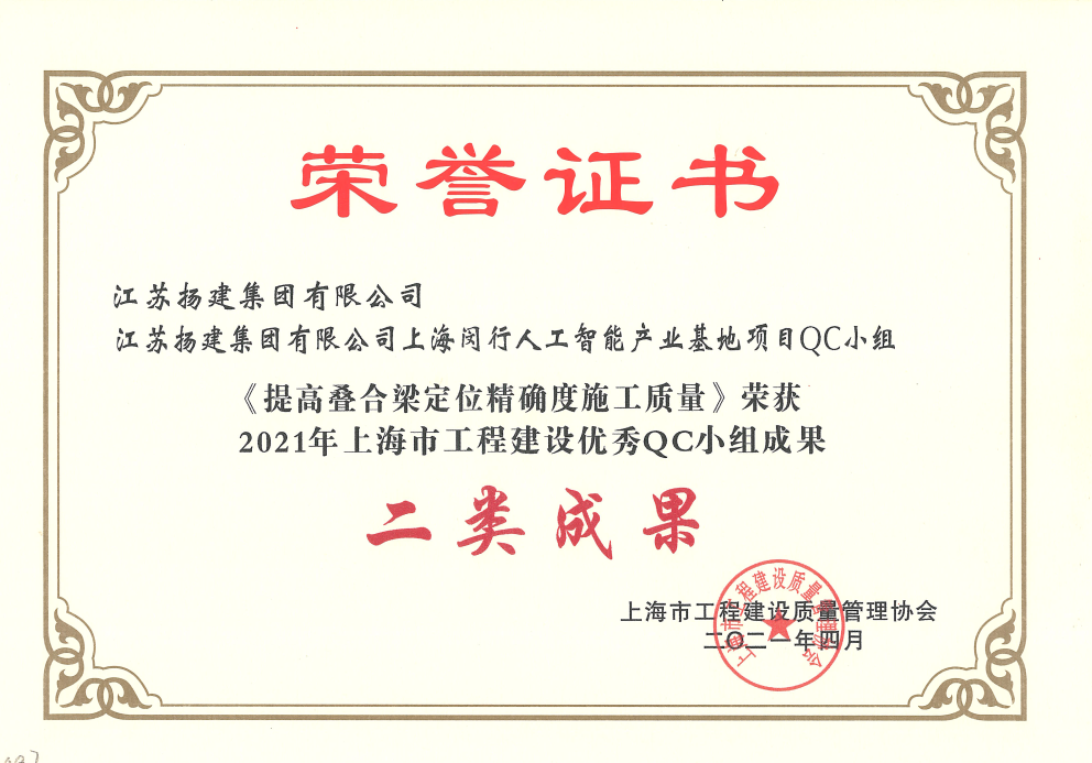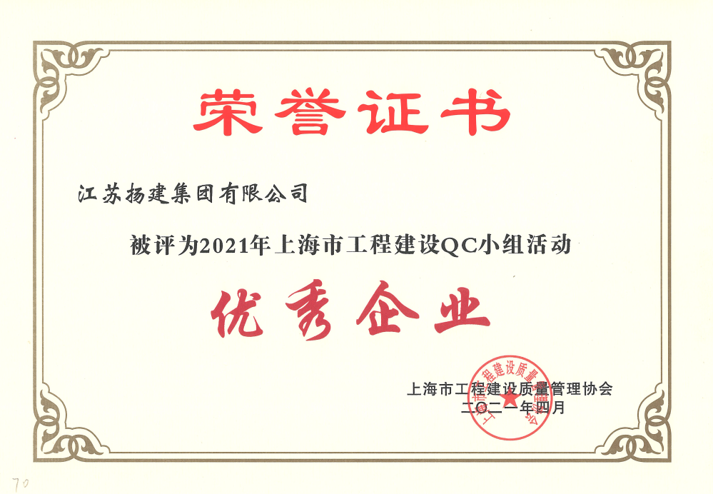 揚建網(wǎng)訊 日前在上海結束的2021年度上海市工程建設優(yōu)秀QC小組成果評審會上,在通過江蘇省滬辦建管處層層選拔、推薦申報后,經(jīng)上海市工程建設質(zhì)量管理協(xié)會質(zhì)量審定委員會審定,江蘇揚建集團有限公司再次獲評上海市工程建設QC小組活動優(yōu)秀企業(yè)。