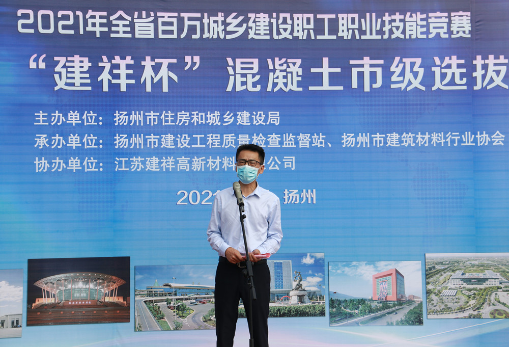 揚(yáng)建網(wǎng)訊 10月14日上午,2021年全省百萬(wàn)城鄉(xiāng)建設(shè)職工職業(yè)技能競(jìng)賽揚(yáng)州市“建祥杯”市級(jí)選拔賽在我集團(tuán)華運(yùn)公司拉開序幕。開幕儀式由市住建局陳立軍處長(zhǎng)主持;集團(tuán)董事、執(zhí)行總裁、市建筑材料行業(yè)協(xié)會(huì)會(huì)長(zhǎng)沈國(guó)仁出席并發(fā)表致辭;市質(zhì)檢站劉榮祥科長(zhǎng)出席并宣讀比賽規(guī)則;市住建局耿良副局長(zhǎng)出席并作重要講話。本次賽事為市級(jí)選拔賽,由江蘇建祥高新材料有限公司冠名并具體操辦,建祥、榮能、金城、強(qiáng)祥、上建等多家全市知名混凝土企業(yè)參加。