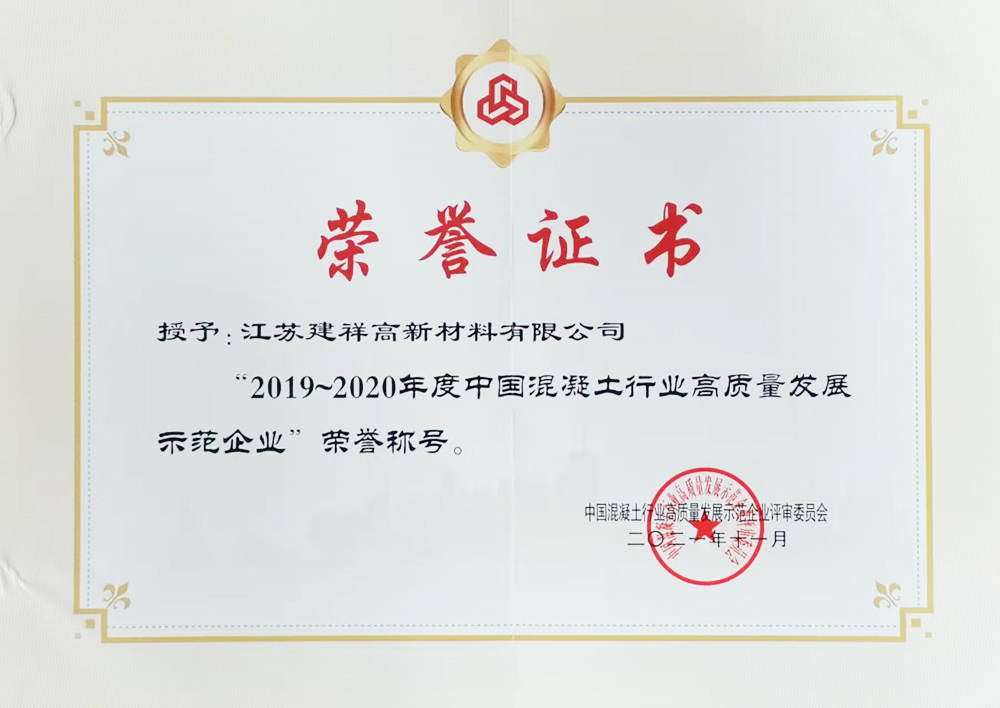 建祥獲評(píng)中國(guó)混凝土行業(yè)高質(zhì)量發(fā)展示范企業(yè)