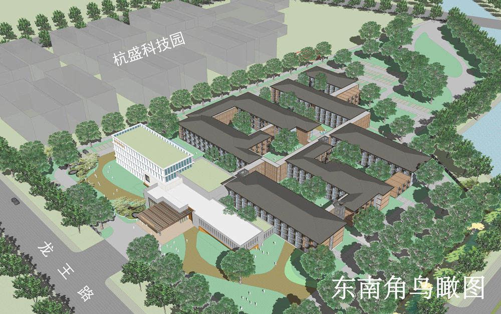 該項目位于328國道與金灣路交叉口西南角,地勢平坦;北側(cè)現(xiàn)有排澇河流,西側(cè)與杭盛工業(yè)園相鄰。項目占地約51畝,后期預備留用地約21畝,本期建設規(guī)模約3萬平方米,共建有500間客房和相關(guān)配套設施,防疫按照三區(qū)三通道的要求予以設計,主體建筑采用箱式結(jié)構(gòu)局部鋼結(jié)構(gòu)建造。該項目采用院落式布局,以3-4層的建筑通過連廊圍合形成形態(tài)各異的庭院空間,實現(xiàn)人與建筑、自然和諧共生,未來將作為杭集工業(yè)園區(qū)的配套公寓。