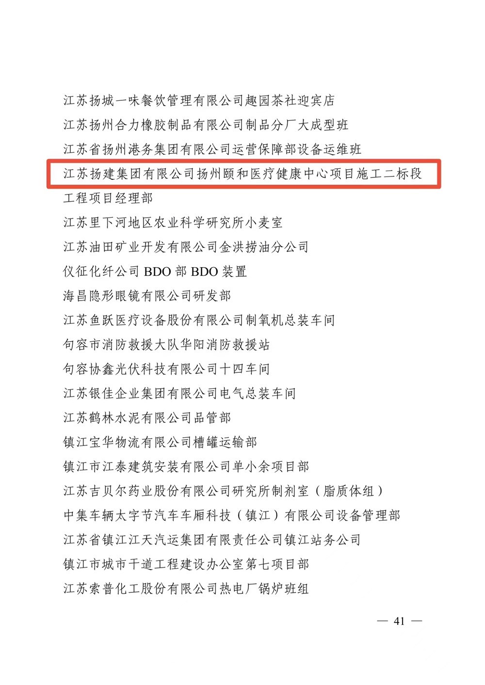 揚建網(wǎng)訊 近日,江蘇省總工會印發(fā)了《關于表彰2022年度省五一勞動獎和省工人先鋒號的決定》,我集團頤和醫(yī)療健康中心項目管理二標段工程項目部被授予“江蘇省工人先鋒號”稱號。