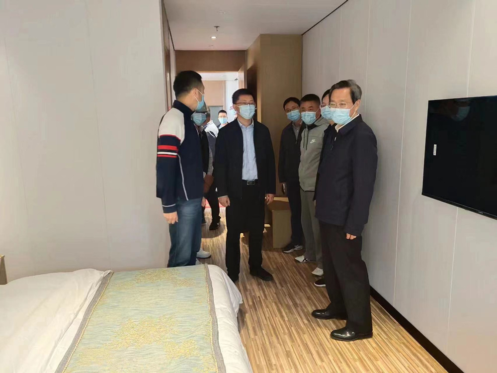 韓驊同志首先參觀了本項目樣板間,隨后認真聽取了工程設(shè)計方案及施工進度計劃匯報;對揚建集團這段時間付出的努力給予了肯定,并期望廣陵健康驛站項目早日交付使用,為疫情常態(tài)化下防控工作提供保障。