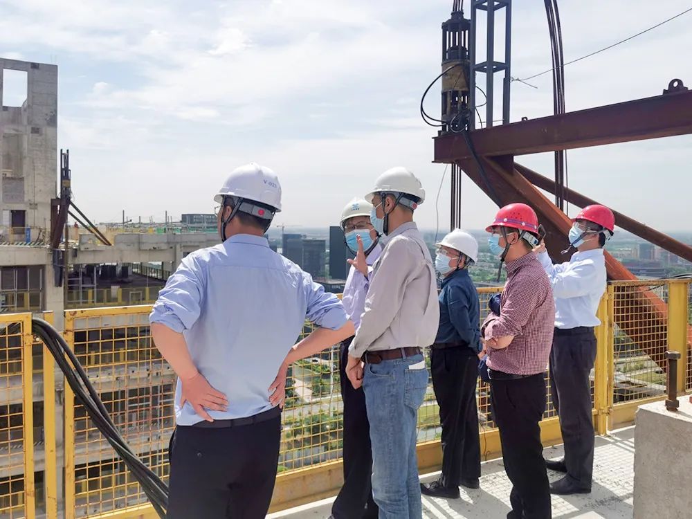 為確保鋼連廊的順利提升,施工期間,集團(tuán)領(lǐng)導(dǎo)和技術(shù)部門多次來現(xiàn)場(chǎng)進(jìn)行工作指導(dǎo),邀請(qǐng)了東南大學(xué)郭正興教授來項(xiàng)目對(duì)鋼連廊提升的準(zhǔn)備工作進(jìn)行檢查和驗(yàn)收。