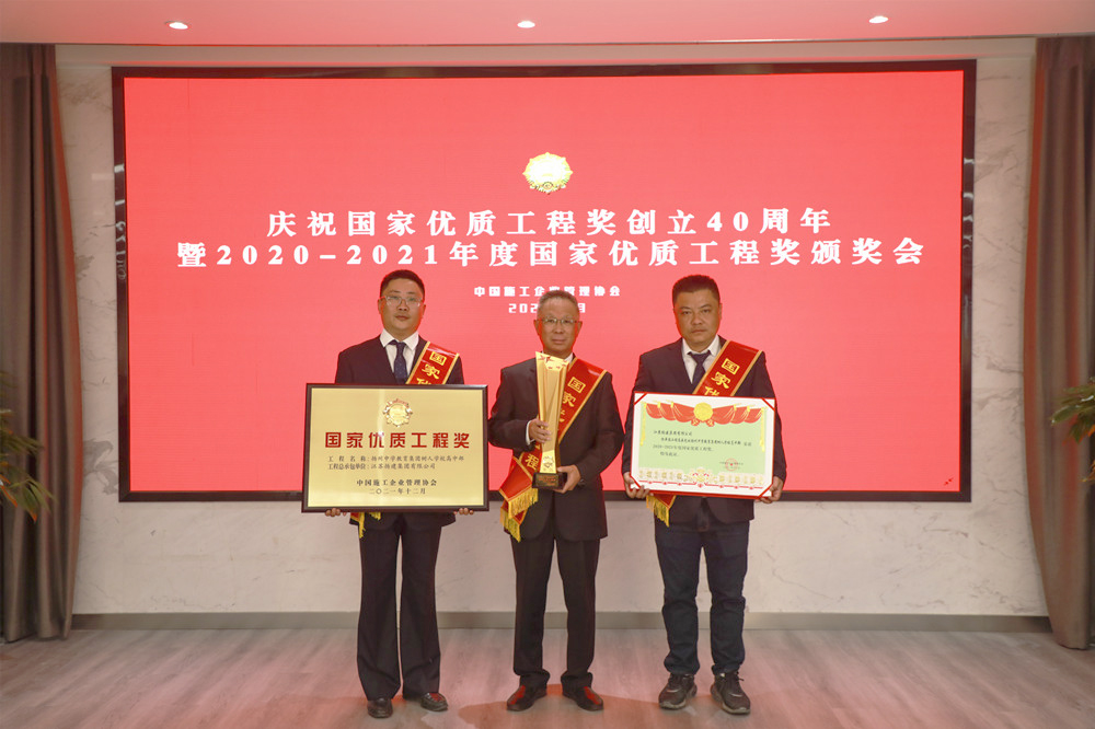 本次是中施企協(xié)第一次對國家優(yōu)質(zhì)工程獎進行云上頒獎。國家優(yōu)質(zhì)工程獎每2個年度頒獎1次,2020-2021年度全國共表彰了687項國家優(yōu)質(zhì)工程獎工程,集團共有4個項目受到表彰,其中,三個總承建項目“揚州中學(xué)教育集團樹人學(xué)校高中部”(項目經(jīng)理張煒瑋)、“新建萬福大橋工程”(項目經(jīng)理張斌)、“江蘇旅游職業(yè)學(xué)院一期項目”(項目經(jīng)理李煒),一個參建項目“三亞市婦幼保健院整體搬遷(新址)建設(shè)項目”(項目經(jīng)理李金邦)。此次創(chuàng)造了集團兩年度獲得優(yōu)質(zhì)工程獎項目數(shù)最多的記錄。