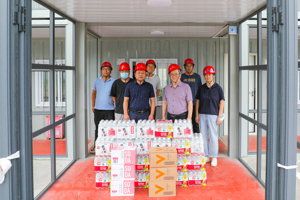 在施工一線慰問過程中,集團(tuán)領(lǐng)導(dǎo)認(rèn)真了解了現(xiàn)場(chǎng)管理人員、隊(duì)組工人工作及生活狀況、防暑降溫及疫情防控情況,代表集團(tuán)公司向高溫天氣下堅(jiān)守崗位、忠于職守的施工人員致以了親切的問候,為大家送來清涼飲料等夏季消暑用品。針對(duì)夏季施工生產(chǎn),集團(tuán)領(lǐng)導(dǎo)提醒項(xiàng)目負(fù)責(zé)人,一要根據(jù)夏季氣候特點(diǎn)和項(xiàng)目實(shí)際情況,注重合理調(diào)整現(xiàn)場(chǎng)施工作業(yè)時(shí)間、合理安排不同人群工作崗位和勞動(dòng)強(qiáng)度,做到“抓兩頭避中間,避高就低、避外就里、勞逸結(jié)合”;二要配備充足的防暑降溫食物、藥品、茶水,加強(qiáng)生活區(qū)及食品安全衛(wèi)生管理,確保廣大施工人員以良好的身心狀態(tài)優(yōu)質(zhì)高效完成各項(xiàng)生產(chǎn)任務(wù)。