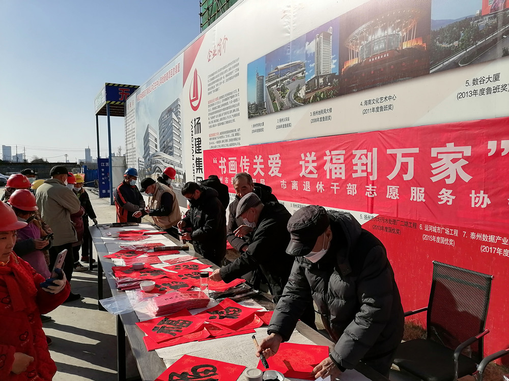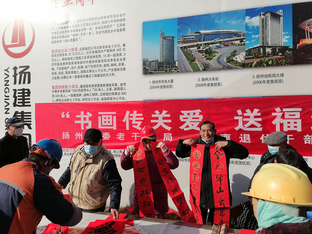 揚(yáng)建網(wǎng)訊 春節(jié)將至,歲寒情深,1月16日下午,集團(tuán)聯(lián)合揚(yáng)州市委老干部局、市離退休干部志愿服務(wù)協(xié)會(huì),在廣陵區(qū)中醫(yī)院項(xiàng)目部開(kāi)展了“書(shū)畫(huà)傳關(guān)愛(ài),送福到萬(wàn)家”志愿服務(wù)活動(dòng)。