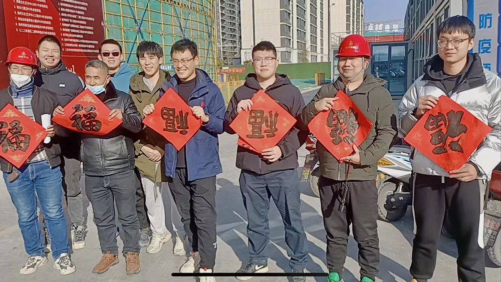 活動(dòng)吸引了項(xiàng)目部眾多工友的關(guān)注和參與,協(xié)會(huì)志愿者們將準(zhǔn)備好的春聯(lián)展示出來(lái),一一向現(xiàn)場(chǎng)工友介紹每副春聯(lián)的美好寓意;書(shū)法老師則備好筆墨紙硯,根據(jù)員工的不同需求現(xiàn)場(chǎng)揮毫:“金虎歸山辭舊去 玉兔下凡迎春來(lái)”“東風(fēng)多情撫翠柳 喜雨有意醉紅花”......