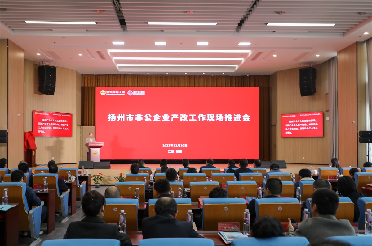 推進(jìn)會(huì)分上下兩個(gè)半場(chǎng)進(jìn)行,上半場(chǎng)是觀摩揚(yáng)建集團(tuán)產(chǎn)改工作,下半場(chǎng)是揚(yáng)州市非公企業(yè)產(chǎn)改工作現(xiàn)場(chǎng)推進(jìn)會(huì)。