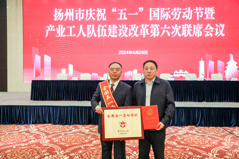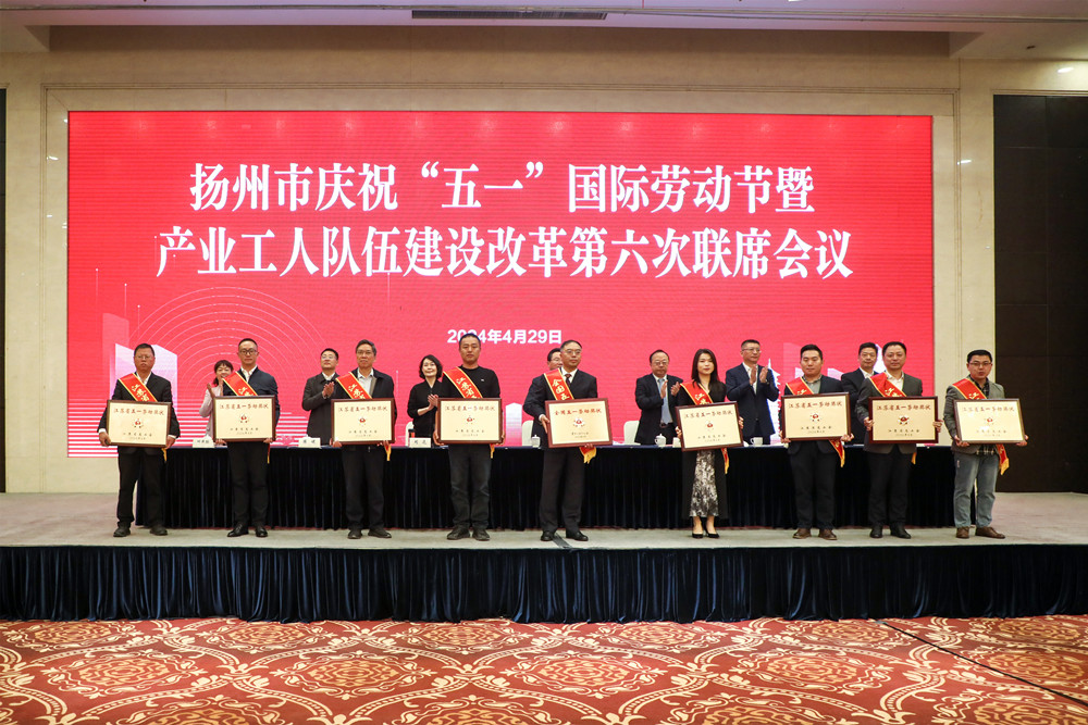 4月29日,揚(yáng)州市召開慶?!拔逡弧眹H勞動節(jié)暨產(chǎn)業(yè)工人隊(duì)伍建設(shè)改革第六次聯(lián)席會議,表彰揚(yáng)州市獲得全國、省、市五一勞動獎和工人先鋒號的單位及代表。集團(tuán)公司總經(jīng)理鄒厚存作為全市唯一獲得全國五一勞動獎狀的單位代表,在會上作了題為《根植主業(yè)建精品,守正創(chuàng)新謀發(fā)展》的宣講,集團(tuán)公司副總經(jīng)理、工會主席劉海斌參加會議。