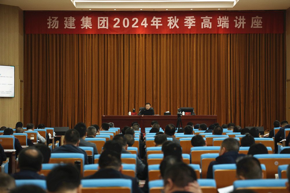 揚建網(wǎng)訊 10月26日,揚建集團2024年秋季高端講座在揚建產(chǎn)業(yè)園四樓大禮堂順利舉行。揚建集團黨委班子、總經(jīng)理室成員、部分基層單位經(jīng)理室成員及項目經(jīng)理共計152人參加。