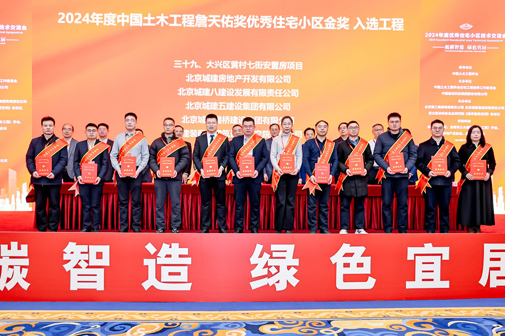揚(yáng)建網(wǎng)訊 2025年2月24日上午,中國土木工程學(xué)會(huì)住宅工作指導(dǎo)委員會(huì)在北京召開了2024年度中國土木工程學(xué)會(huì)優(yōu)秀住宅小區(qū)技術(shù)交流會(huì),會(huì)上舉行了2024年度中國土木工程學(xué)會(huì)詹天佑優(yōu)秀住宅小區(qū)金獎(jiǎng)?lì)C獎(jiǎng)儀式。由揚(yáng)建集團(tuán)承建的天月府項(xiàng)目榮獲該獎(jiǎng)項(xiàng),集團(tuán)公司總經(jīng)理鄒厚存、項(xiàng)目管理二公司總工楊忠偉登臺(tái)領(lǐng)獎(jiǎng)。