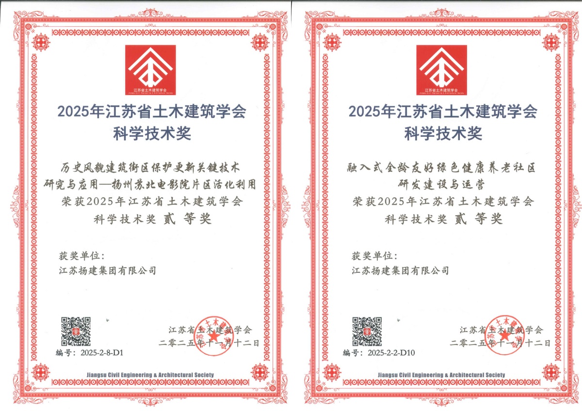 揚(yáng)建網(wǎng)訊 近日,集團(tuán)科技創(chuàng)新領(lǐng)域再獲殊榮。在江蘇省土木建筑學(xué)會(huì)第十一屆理事會(huì)第五次會(huì)上,由集團(tuán)技術(shù)部牽頭,聯(lián)合項(xiàng)目管理一公司、市政工程分公司、機(jī)電安裝分公司、揚(yáng)州廣陵建工有限公司、江蘇華發(fā)裝飾有限公司共同完成的“歷史風(fēng)貌建筑街區(qū)保護(hù)更新關(guān)鍵技術(shù)研究與應(yīng)用——揚(yáng)州蘇北電影院片區(qū)活化利用”成果獲得表彰,被評(píng)定為“2025年江蘇省土木建筑學(xué)會(huì)科學(xué)技術(shù)獎(jiǎng)”二等獎(jiǎng)。