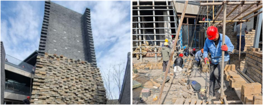 保護(hù)和傳承城市歷史文化是第一原則。通過(guò)歷史建筑重塑,增強(qiáng)文化認(rèn)同感,以延續(xù)城市文脈。項(xiàng)目啟動(dòng)之初,就秉承“傳承歷史風(fēng)貌,減少對(duì)周邊的壓迫感”的理念。在如何實(shí)現(xiàn)雙曲面城墻造型的問(wèn)題上,項(xiàng)目團(tuán)隊(duì)采用“鋼龍骨+干掛砌筑”的工藝,摒棄普通砌筑方式,采用內(nèi)部增加鋼龍骨,外部通過(guò)“干掛”工藝砌筑城墻磚,每4皮設(shè)置一道水平支撐,將城墻磚“砌筑”在鋼骨架上形成整體。既實(shí)現(xiàn)了雙曲面城墻的造型,又確保了結(jié)構(gòu)安全與穩(wěn)定性。