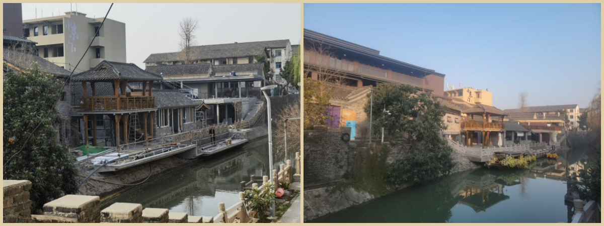 古城保護(hù)不是將歷史“封存”,而是讓其重新融入城市生活。小東門(mén)項(xiàng)目的核心目標(biāo)之一,是提升空間利用率,激發(fā)街區(qū)活力;結(jié)合小秦淮河濱水環(huán)境優(yōu)勢(shì)設(shè)置親水平臺(tái),親水平臺(tái)采用“配重平衡懸挑”技術(shù),避免在河道打樁,保護(hù)了小秦淮河的水生態(tài)環(huán)境,項(xiàng)目團(tuán)隊(duì)施工時(shí)利用混凝土底板做配重,調(diào)整梁的受力狀態(tài),保證結(jié)構(gòu)的平衡性和穩(wěn)定性,同時(shí)在基礎(chǔ)壓入鋼管樁與底板混凝土形成整體,增強(qiáng)底板的抗拔強(qiáng)度,保證了平臺(tái)的安全性。通過(guò)借助小秦淮河的景觀資源,打造親水平臺(tái)與臨河閣樓,將城墻、水系、街巷串聯(lián)成系統(tǒng),重塑“水城共生”的揚(yáng)州傳統(tǒng)格局。