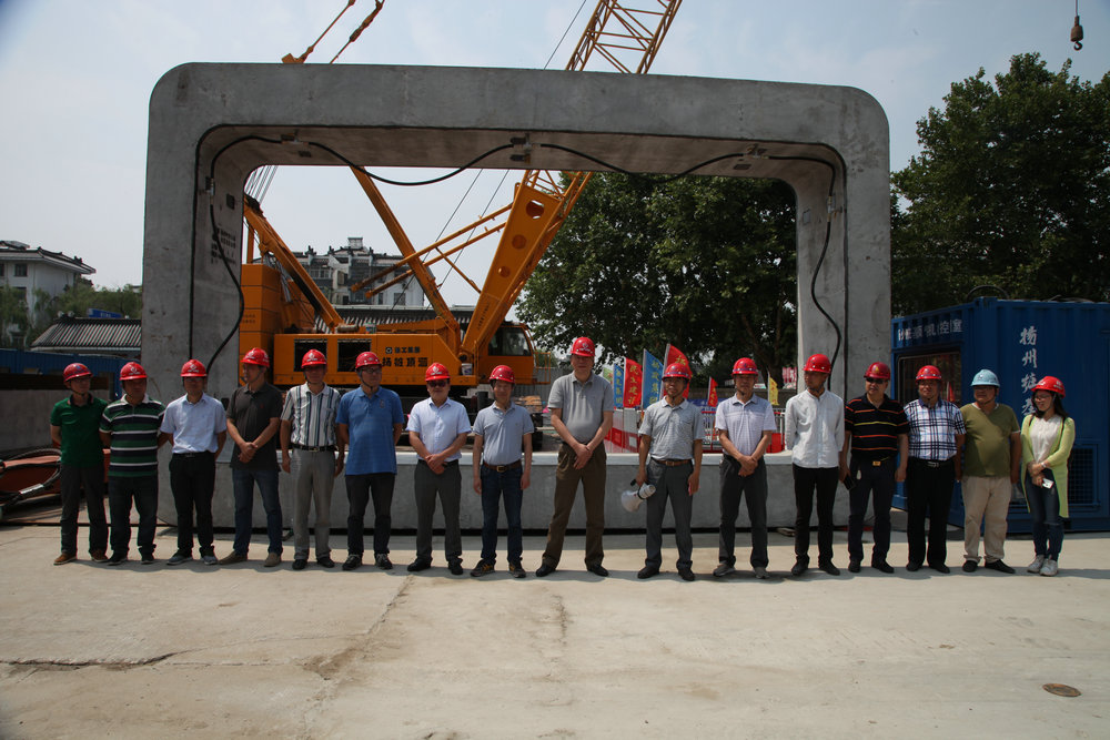 揚(yáng)建網(wǎng)訊(樁基 王瀅)6月14日,荷花池水下停車場通往蘇北醫(yī)院地下停車場的聯(lián)絡(luò)通道頂涵工程始發(fā)儀式在蘇北醫(yī)院舉行,建設(shè)單位副總經(jīng)理王進(jìn)、安監(jiān)站王建、質(zhì)監(jiān)站金衛(wèi)東、揚(yáng)建集團(tuán)董事兼常務(wù)副總經(jīng)理鄒厚存、總經(jīng)理助理郝敬東、樁基公司總經(jīng)理于金濤等領(lǐng)導(dǎo)出席。