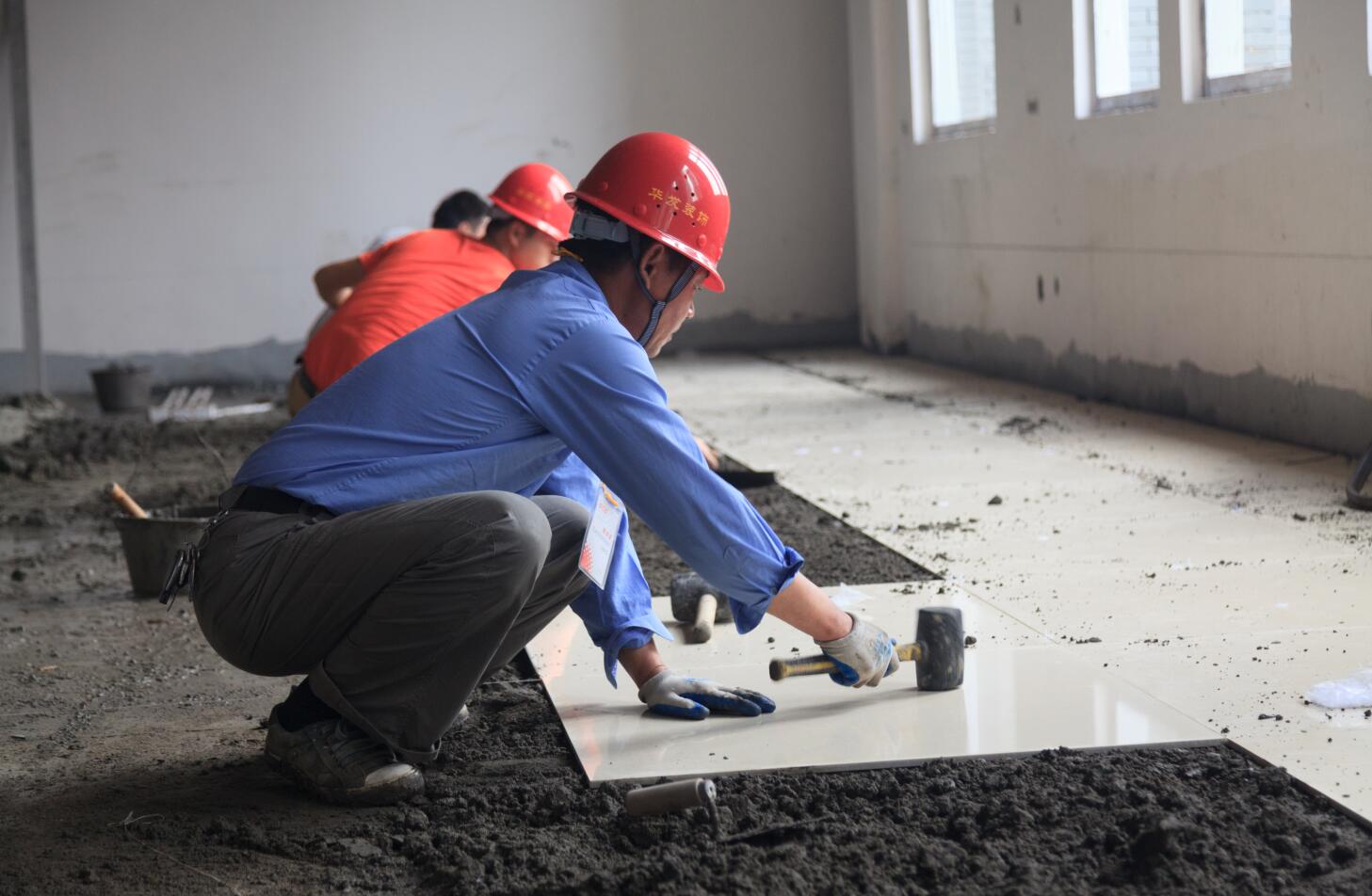 受現(xiàn)場(chǎng)工作面影響,本次競(jìng)賽活動(dòng)共有華發(fā)、市政及機(jī)電環(huán)保公司3個(gè)專業(yè)公司派出競(jìng)賽小組參加了比拼。其中,華發(fā)裝飾派出4個(gè)競(jìng)賽小組在電商物流學(xué)院教學(xué)樓比拼地磚鑲貼,市政公司派出3個(gè)競(jìng)賽組進(jìn)行人行道陶土磚鋪設(shè)比拼,機(jī)電環(huán)保公司派出4個(gè)競(jìng)賽小組在學(xué)生宿舍樓開(kāi)展電纜管道穿線競(jìng)賽。