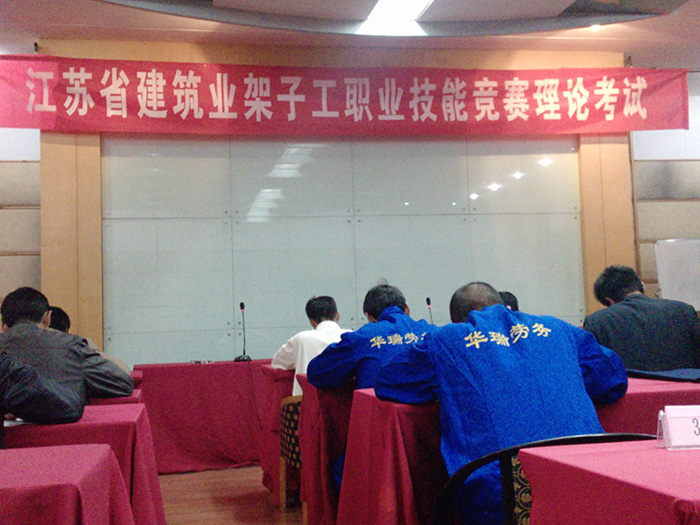 2010年11月2日,華瑞勞務(wù)公司4名腳手架搭設(shè)專業(yè)員工,代表我集團(tuán)參加了由江蘇省總工會(huì)、省建工局、省人力資源和社會(huì)保障局共同組織舉辦的江蘇省建筑業(yè)腳手架搭設(shè)技能競賽的活動(dòng)。